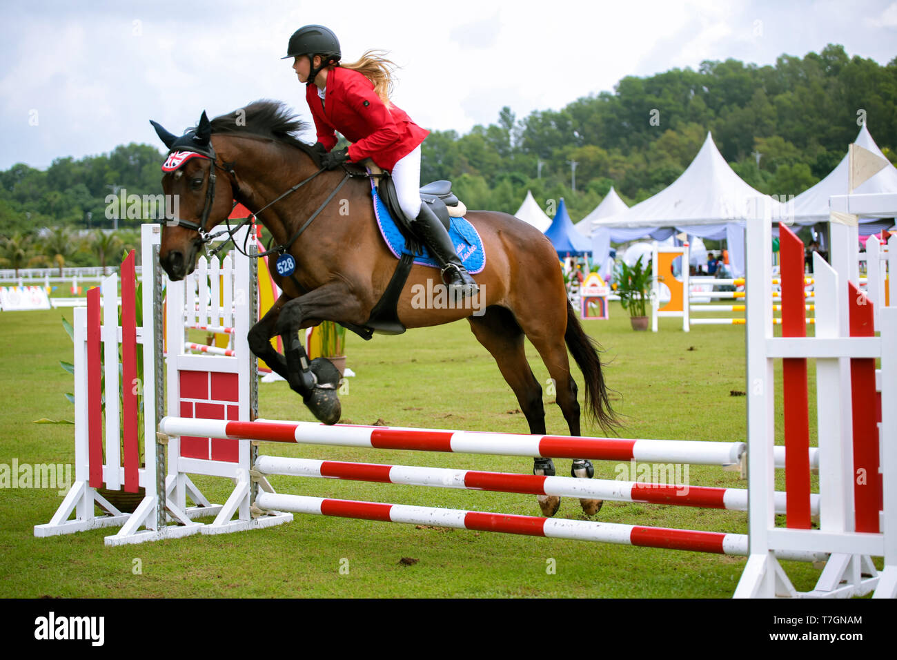 Horse Rider Jumping Over Obsticle During A Horse Back Riding Competiton At Equestrian Park Putrajaya Stock Photo Alamy